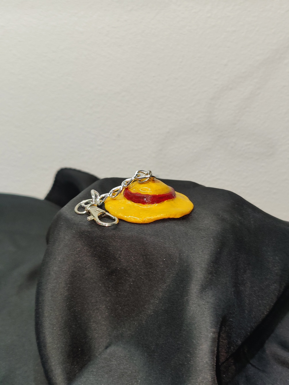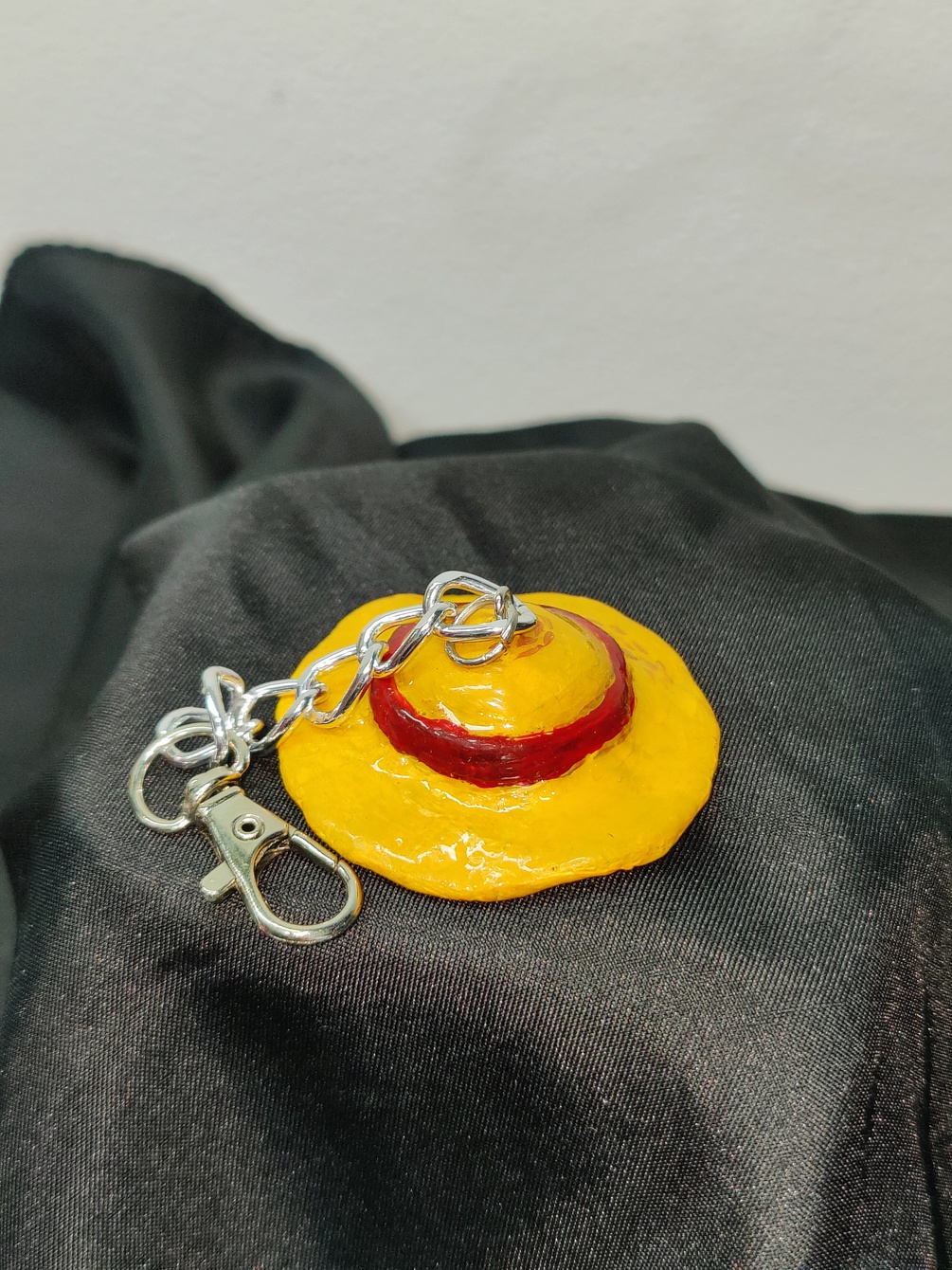 The Strawhat keychain was made my hand using polymer clay and it was hand painted and coated with epoxy resin for a durable finish.