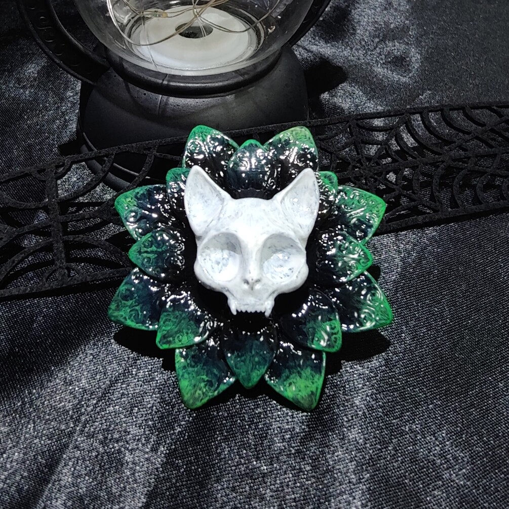 This unique mandala pin was originally sculpted in Nomad Sculpt, a 3D design program on the iPad Pro. The intricate details were brought to life using a high-precision 3D resin printer. After printing, the pin was hand-painted and finished with a durable epoxy resin coating, ensuring long-lasting quality and vibrant color.