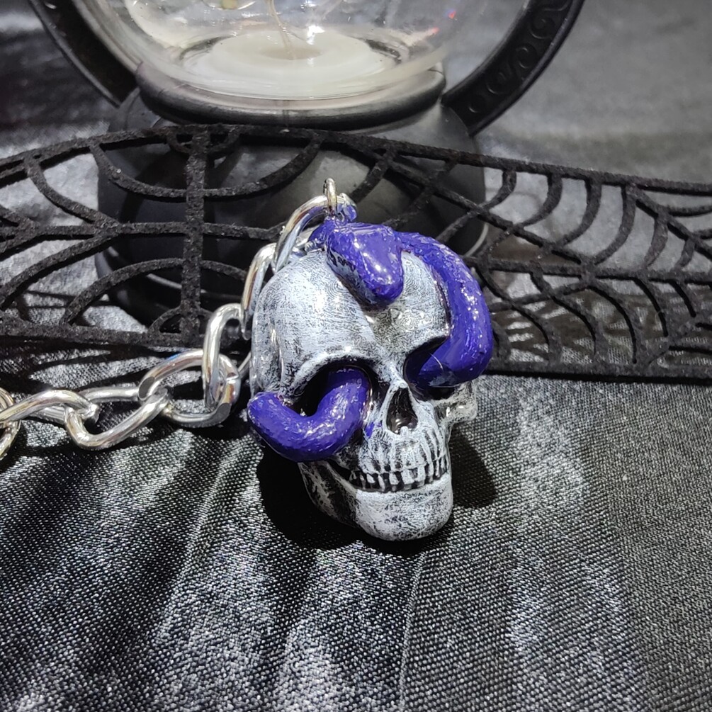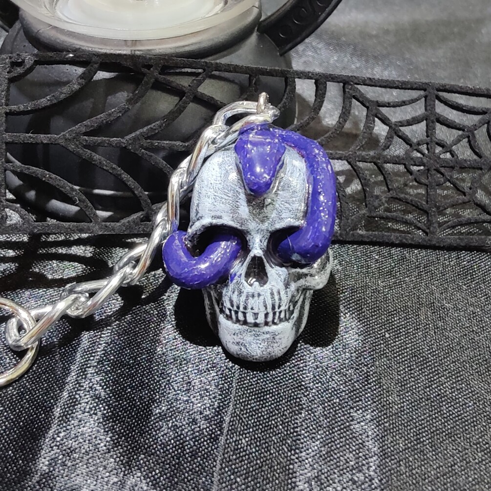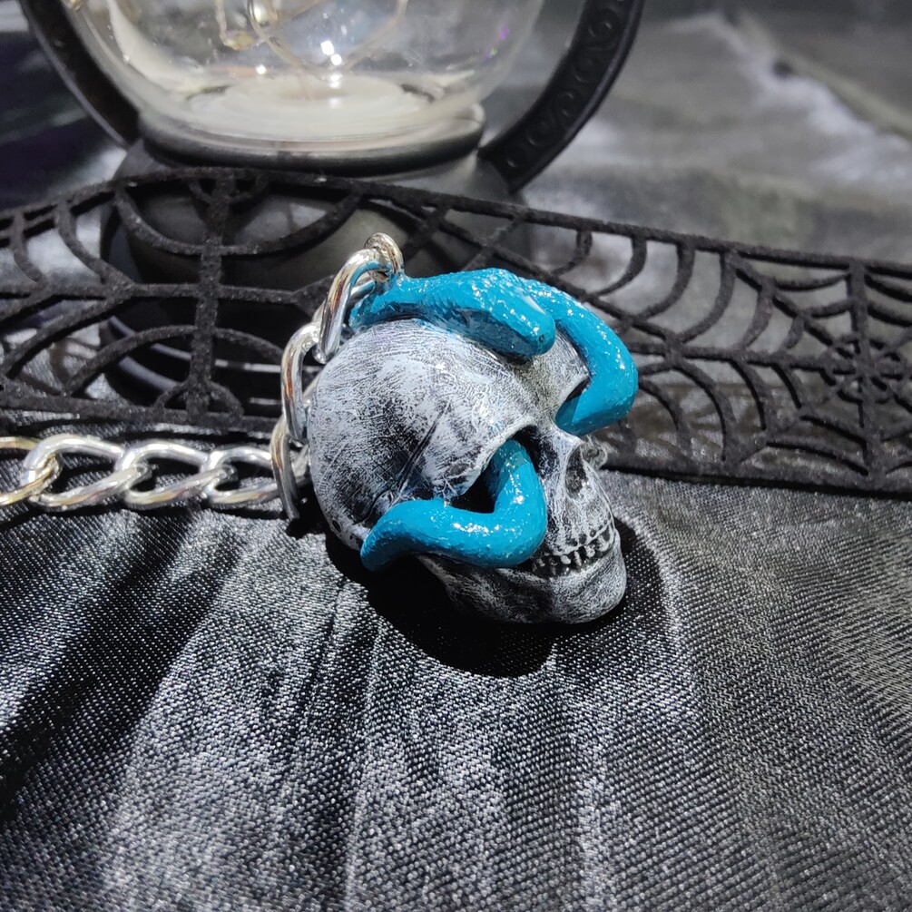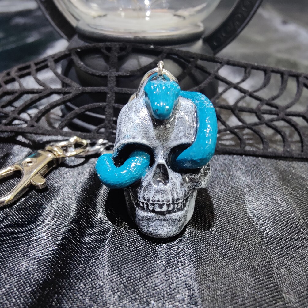 This unique skull keychain was originally sculpted in Nomad Sculpt, a 3D design program on the iPad Pro. The intricate details were brought to life using a high-precision 3D resin printer. After printing, the keychain was hand-painted and finished with a durable epoxy resin coating, ensuring long-lasting quality and vibrant color.